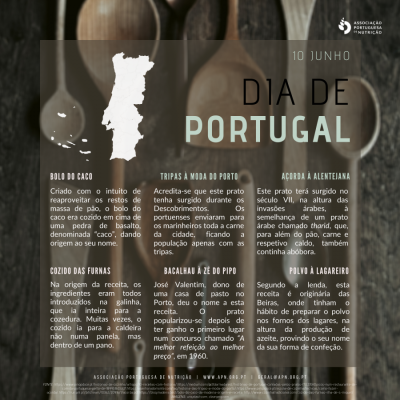 10 junho 2020Neste dia, a Associação Portuguesa de Nutrição partilha a história de algumas receitas tipicamente portuguesas.