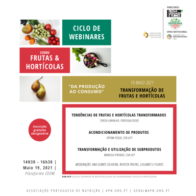 Webinar "Transformação de Frutas e Hortícolas" - 19 Maio | Ciclo de Webinares sobre Fruta e Hortícolas: da Produção ao Consumo